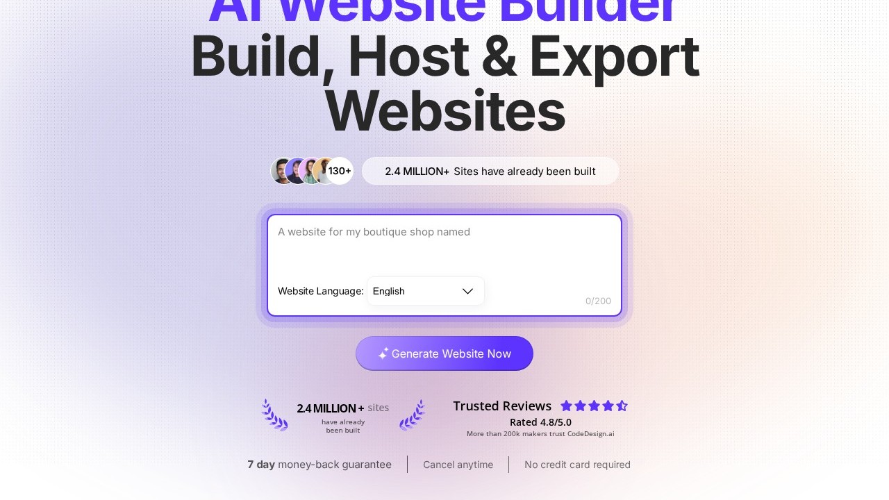CodeDesign is a website builder using artificial intelligence to construct websites in moments with AI-crafted UI components, simple personalization, and intelligent recommendations. It provides cloud hosting, SEO, and database functionalities, enabling publication to your own domain or code export. Additionally, it features marketing copy creation and a 30-day money-back guarantee.