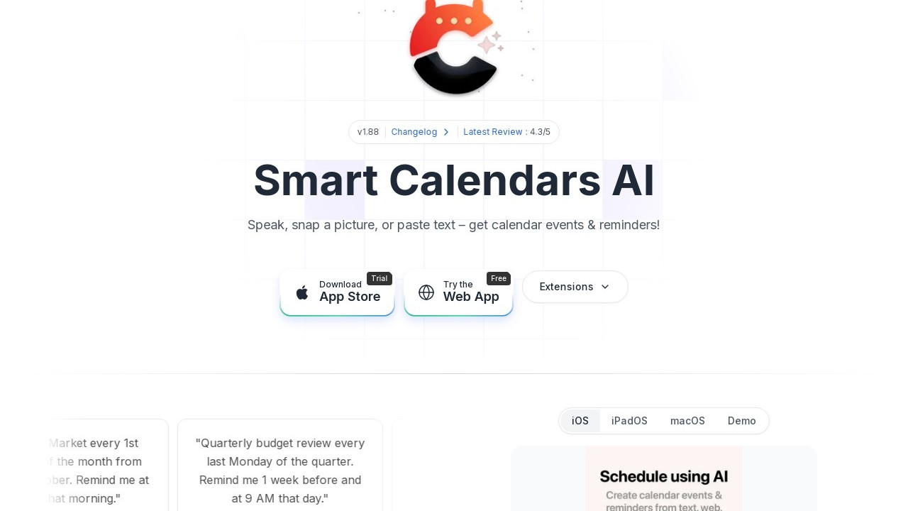 Smart Calendar is an AI-driven productivity application that automatically converts your to-do lists into a refined calendar schedule. Utilizing artificial intelligence, this platform examines your tasks, deadlines, and priorities, then expertly organizes them in your calendar, adapting to changes instantly. Its key AI element, Athena, is a GPT-powered personal assistant that interacts with users to arrange tasks, recommend optimal scheduling strategies, and decompose large projects into smaller, achievable tasks. Smart Calendar's AI continually learns from your habits and preferences to craft increasingly tailored schedules, making it an essential tool for busy professionals, students, and teams who wish to eliminate manual calendar tasks while optimizing productivity and maintaining a balanced work-life routine.