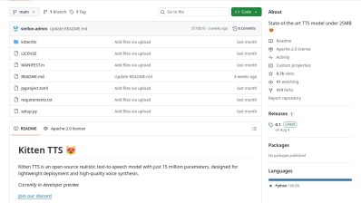KittenTTS is an ultra-lightweight open-source text-to-speech model that converts written text into natural-sounding speech with impressive quality, all while requiring minimal computational resources. Unlike most speech conversion AI models that demand powerful hardware, KittenTTS operates efficiently on almost any device, including older computers, Raspberry Pi, and even browsers, thanks to its tiny size of 25 MB and design with 15 million parameters. This AI model provides several realistic voices in real-time without needing an internet connection or GPUs, making it ideal for developers creating privacy-focused applications, edge computing projects, accessibility tools, or any scenarios where resource efficiency is vital. Combining high output quality, incredible speed on CPU-only systems, and an open-source Apache 2.0 license, KittenTTS represents a breakthrough in AI-powered voice conversion where larger models simply cannot function.