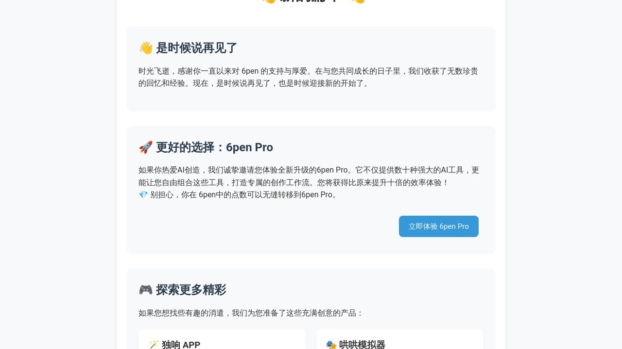6pen is an AI-driven platform that enables users to transform their text descriptions into artistic creations. It supports various models, accepts both Chinese and English input, and retains no copyright. The platform offers a wide array of customization options for the artwork, including model selection, random seed, reference image, resolution, style adjustment, and artist choice. Moreover, 6pen supplies extensive data for each creation, such as iteration diagrams of the generation process, loss curves, and energy consumption metrics. Additionally, it offers an AI art guide and is compatible with Xcode 13 or later versions. Note: The site is not available in English, but Chrome's translation feature works effectively.