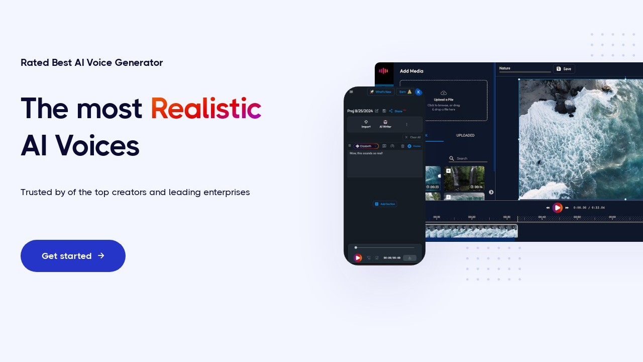 This robust online voice generator provides a wide selection of over 130 AI voices in various accents and tones, allowing you to effortlessly find the ideal voice for your videos, presentations, commercial branding, e-learning materials, and more. Utilizing cutting-edge AI algorithms and deep learning, Murf’s AI voices are remarkably lifelike, avoiding any robotic or monotonous tones. Moreover, Murf's user-friendly interface, modern design, and premium features enable you to create authentic-sounding voice overs in a matter of minutes! Give Murf a try today and discover the capabilities of AI-generated speech.