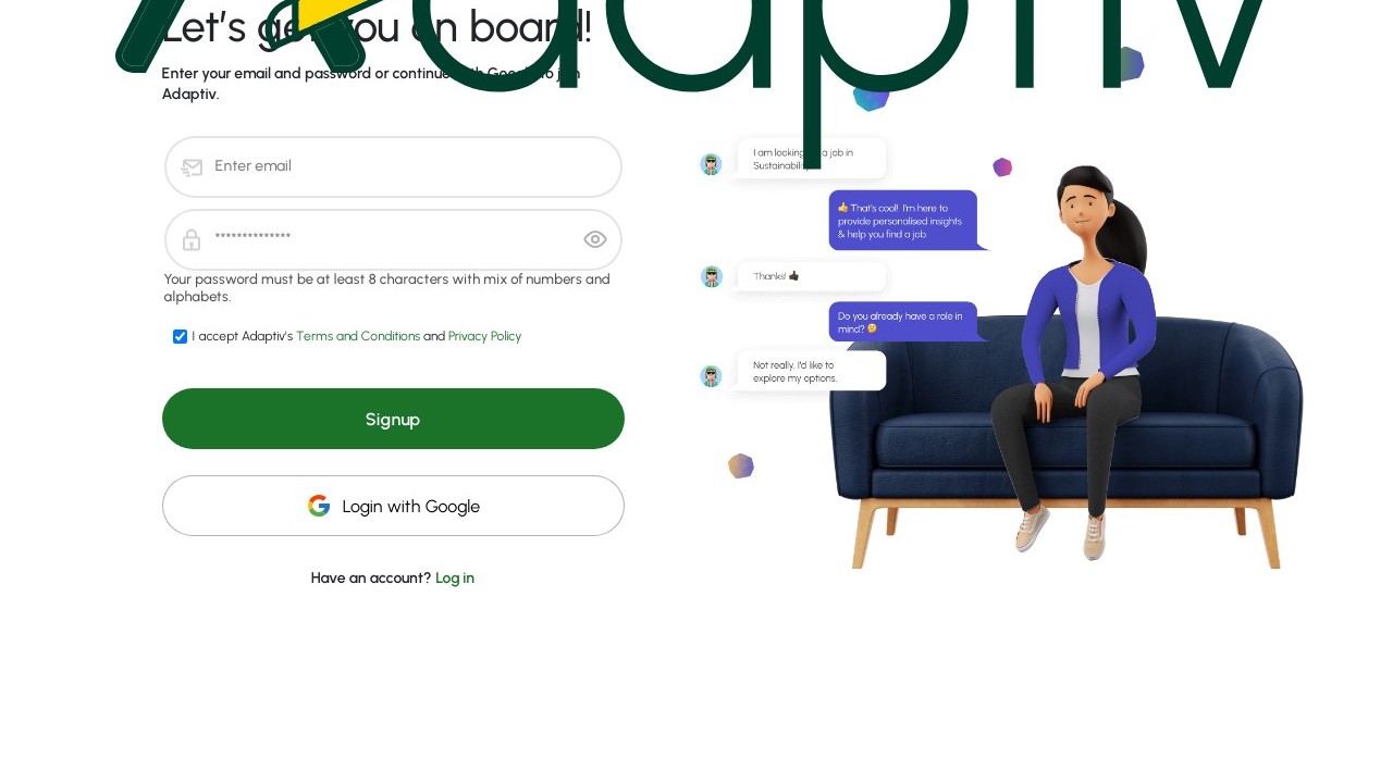 Ada, the AI-driven guide on Adaptiv, can address career-related inquiries and assist you in exploring the most suitable career paths aligned with your skills and passions, offering advice on preparing for various professions by recommending courses.