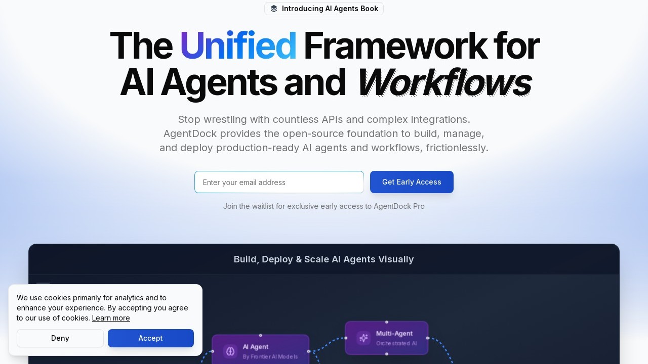 AgentDock is a free-to-use platform that allows companies and developers to create, manage, and launch advanced AI agents and automated processes without needing deep technical knowledge. With its visual workflow builder, modular design, broad third-party integration, and high-level security, the platform helps users automate intricate business operations while keeping an eye on costs and performance. Businesses prefer AgentDock for its adaptability, scalability, and framework-independent method that removes dependency on single vendors and offers the necessary tools to develop AI solutions ready for production, capable of revolutionizing departmental operations.
