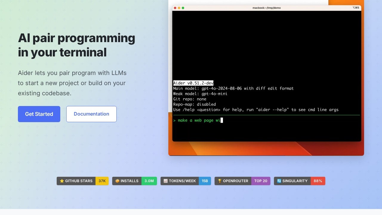 Aider is a coding assistant driven by AI that aids developers in optimizing their workflow via a command-line interface and interactive chat. By utilizing large language models, such as GPT-4, it can edit code, manage files, and automatically integrate with Git. Developers may opt for Aider to increase productivity, enhance code quality, and automate repetitive tasks across various files. Its capacity to comprehend context, offer real-time suggestions, and operate smoothly with existing tools makes it an asset for both novice and seasoned programmers aiming to boost their coding efficiency.