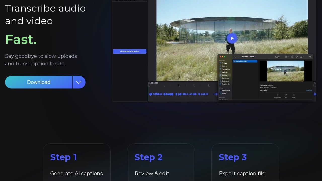 AirCaption is an AI-driven transcription tool designed to create captions, transcripts, and subtitles for both audio and video content. It employs sophisticated AI models to deliver highly precise transcriptions, which can be edited and refined by users. The tool is compatible with multiple languages and includes offline capabilities to ensure privacy. Content creators, professionals, and businesses can utilize AirCaption to boost accessibility, expedite transcription processes, expand their global audience, and elevate the quality of their media content.