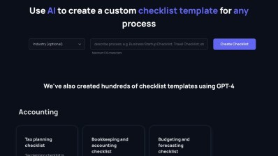 The AI Checklist Generator tool, developed by the creators of Manifestly Checklists, enables users to create personalized checklist templates for any process. Users have the option to select their industry to tailor the checklist accordingly. The tool offers ready-made checklists for a range of industries, including accounting, advertising, agriculture, construction, consulting, e-commerce, education, engineering, financial services, hotel and hospitality, human resources, information technology, insurance, law firms, manufacturing, marketing, property management, real estate, restaurants, retail, software development, and transportation.