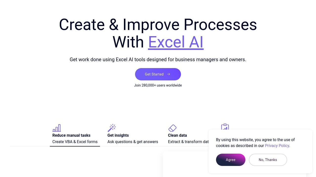 Ajelix is an AI-powered tool designed for Excel and Google Sheets, enabling users to create and interpret formulas, translate spreadsheets, produce templates, and develop VBA scripts with significantly increased speed. The platform includes features like the Excel Formula Generator, Excel VBA Script Generator, Excel Template Generator, Google Sheets Formula Generator, Google Apps Script Generator, a library for formulas and scripts, an Excel File Translator, an Excel Add-in, and a Virtual AI Assistant. Additionally, Ajelix provides business services such as Excel and Google Sheets Automation & Consulting, Business Process Analysis & Optimization, Dynamic Report Creation, Web Development, Business Data Analysis & Forecasting, and WordPress Development.