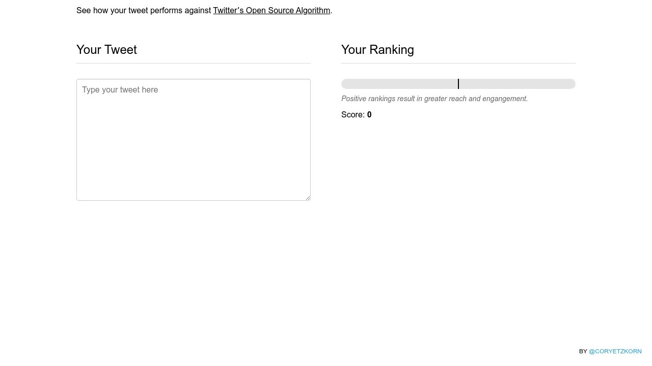 The Algorithm Rank Validator is a tool for assessing how a tweet might fare when evaluated by an open-source Twitter algorithm. It offers a score and a rating, either positive or negative, which reflects how the tweet is likely to be perceived by the Twitter algorithm.