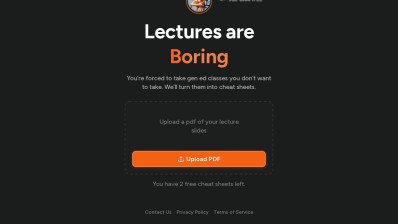 FGenEds offers users cheat sheets for general education courses. It enables users to upload a PDF of lecture slides and converts the content into a more accessible format. Additionally, it includes a Privacy Policy and Terms of Service.