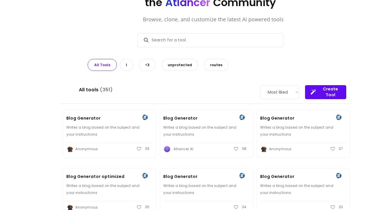 Atlancer.ai tools offer a suite of meticulously crafted resources developed by the Atlancer Community. These include a Product Descriptor Tool, Use Case Identifier, Email Generator, Blog Generator, Travel Plan Generator, Instagram Caption Generator, Newsletter Generator, News Article Writer, AI Tool Ideas Generator, LinkedIn Job Postings, Gym Routine Generator, Instagram Caption Ideas Generator, Event Planner, Sales Script Generator, SEO Optimized Blog Generator, Learn Programming, Followers Generator, SEO Tool, Twitter Analysis Tool, and Meta Audience Generator. These tools are designed to automate a variety of tasks, such as drafting product descriptions, identifying use cases, creating emails, blogs, and newsletters, generating followers, analyzing tweets, and enhancing SEO performance.