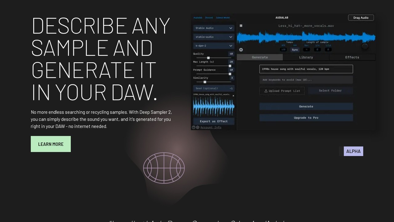 Audialab's Emergent Drums is an AI-driven tool crafted to produce a limitless variety of unique, royalty-free drum samples for music producers and sound designers. This tool allows users to seamlessly create new and inspiring drum sounds customized to their exact requirements, thus eliminating the tediousness of conventional drum sampling. It's especially beneficial for individuals aiming to quickly grow their sound library with original material, sidestep legal complications related to copyright, and preserve a creative advantage in music production.