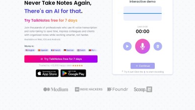 TalkNotes is an app designed for converting voice into text, enabling users to swiftly capture their thoughts and ideas and transform them into well-organized text. Supporting over 50 languages, TalkNotes allows for customization of notes with various styles, tags, and additional options. The app offers features like unlimited notes, 20-minute recordings, file uploads, and personalized styles.