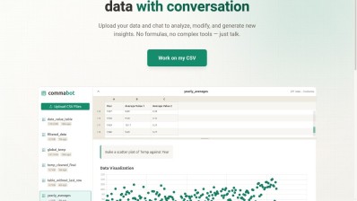 Commabot is a smart online CSV editor created to simplify working with CSV files. Within a user-friendly spreadsheet interface, users can easily open, view, edit, and manage CSV data, making it perfect for organizing and handling large datasets. Its AI assistant feature automates repetitive tasks like bulk editing, ensuring consistency while saving time. The tool also includes functions for extracting information from unstructured text and converting between CSV, nested JSON, and XML formats. People may be drawn to Commabot for its simplicity, efficiency in performing repetitive tasks, and the ability to work with data in a comfortable, customizable environment, including a dark mode option to reduce eye strain.