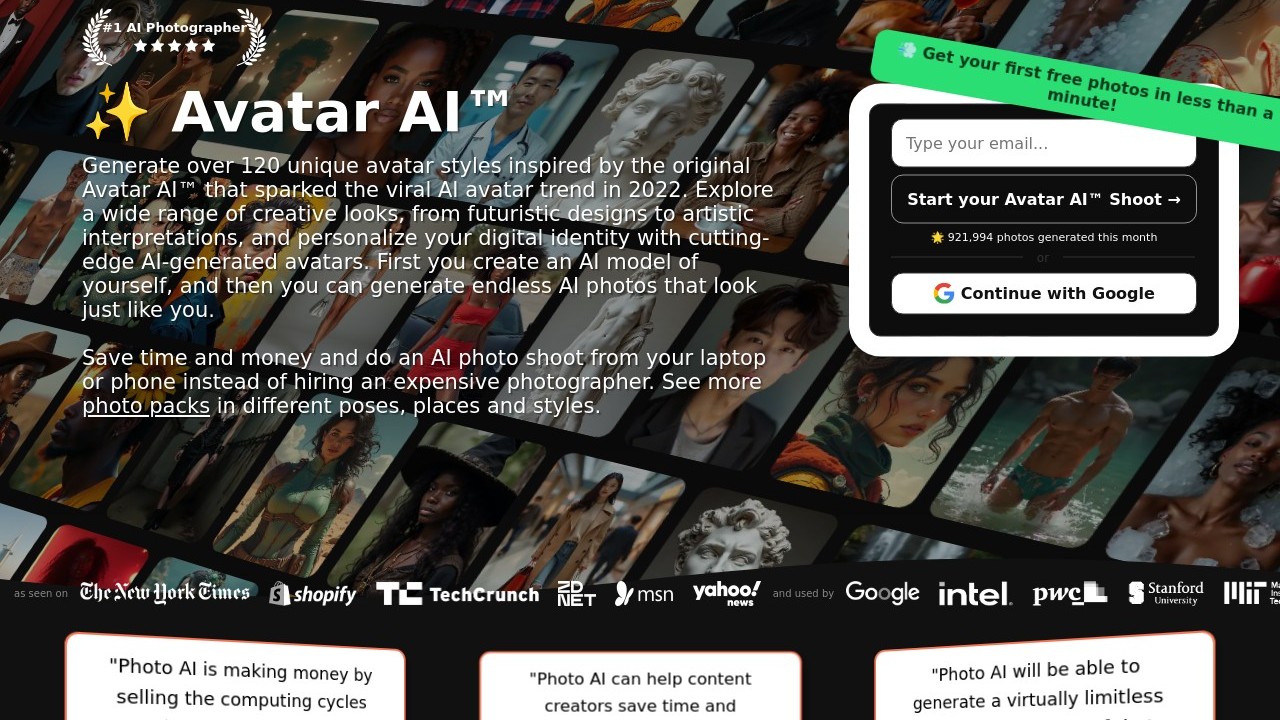 Avatar AI is an AI-driven imaging model that creates lifelike 4K avatars from your pictures. It converts the square avatar into a 2:3 full-size AI Photograph in 4K and can animate it into an AI Video using text-to-speech or your voice. The platform offers over 105 styles for transformation, and your data is erased within 24 hours.