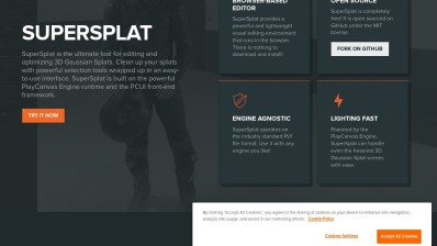 SuperSplat is a web-based application designed for editing and optimizing 3D Gaussian Splats, a method utilized to create realistic 3D scenes from photogrammetry. It features an easy-to-use interface with robust selection tools, enabling users to effortlessly refine splats, move and rotate scenes, and save their projects in different formats such as PLY and SPLAT. Based on the PlayCanvas Engine, SuperSplat ensures rapid performance, even with intricate scenes, and is open-source, making it an appealing choice for developers and artists in fields like gaming, AR, VR, and more who are looking for a cost-effective and efficient tool for 3D splat editing.