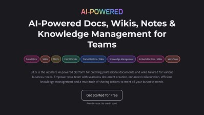 Bit.ai is an all-encompassing platform for document and wiki collaboration, aimed at improving how teams and individuals generate, disseminate, and handle knowledge. It provides a variety of features, including an AI writing assistant, robust wikis, real-time collaboration, document tracking, client portals, and seamless integrations with more than 100 apps. Users can build dynamic, interactive documents and knowledge bases supporting multiple media formats, promoting more efficient and transparent communication. Bit.ai is suited for diverse applications such as project management, content creation, technical documentation, training guides, and client deliverables. Individuals may choose Bit.ai for its capability to simplify collaboration among remote teams, efficiently organize knowledge, and produce engaging, intelligent documents that are easily shareable and trackable.