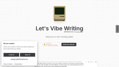 Grimo is a text editor enhanced with AI capabilities, created to work alongside users instead of writing on their behalf. It incorporates sophisticated AI models such as GPT-4, Claude, and DeepSeek to aid in editing, refining prompts, and providing production-grade templates. This tool enables both real-time and asynchronous collaboration, allowing users to work together without the need for file sharing. It features voice input that functions like typing and provides built-in access to research resources like the web, files, and Reddit. Grimo's goal is to empower users to write with confidence by offering AI-driven suggestions and prompt generation, while its straightforward pricing model caters to both solo creators and professional teams.