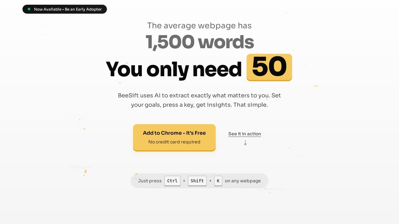 Beesift is an all-encompassing data categorization and analysis tool that leverages AI to assist users in efficiently navigating large datasets, much like bees methodically convert nectar into honey. Utilizing sophisticated machine learning algorithms, the platform automatically categorizes, organizes, and derives insights from unstructured data, allowing businesses to unearth patterns and crucial information that would otherwise be undiscovered. With its user-friendly interface and adaptable AI models, Beesift simplifies complex data management tasks into efficient workflows, serving as a vital resource for researchers, data analysts, and business intelligence experts who need to quickly extract actionable insights from vast amounts of data.