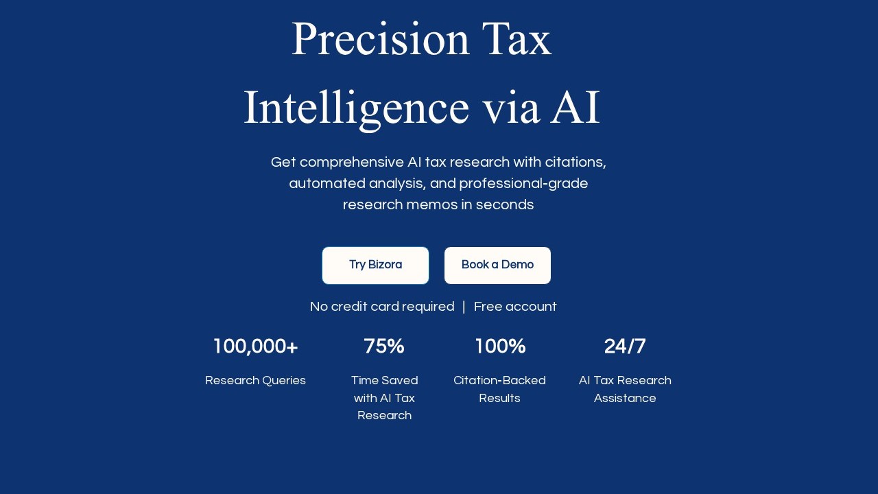 Bizora is a tax research and strategy platform enhanced by AI that assists tax experts—such as CPAs, lawyers, and M&A teams—in swiftly locating precise, citation-supported solutions to intricate tax inquiries. The platform scrutinizes authoritative resources, including the Internal Revenue Code and IRS rulings, to offer immediate, dependable tax insights, pinpoint risks, and formulate strategic tax plans. Tax experts opt for Bizora to significantly cut down on research time, guarantee adherence to up-to-date tax regulations, enhance transaction structures, and deliver more defensible tax advice to clients without the laborious manual effort required by traditional tax research methods.