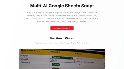 The Google Sheets to OpenAI script enables users to link their Google Sheets directly to the OpenAI API (including GPT-4 and GPT-3.5 models) without relying on external tools like Zapier or Make. It offers immediate access to API responses and can be utilized to generate content across thousands of rows simultaneously. This user-friendly script is available for a one-time purchase of $10.