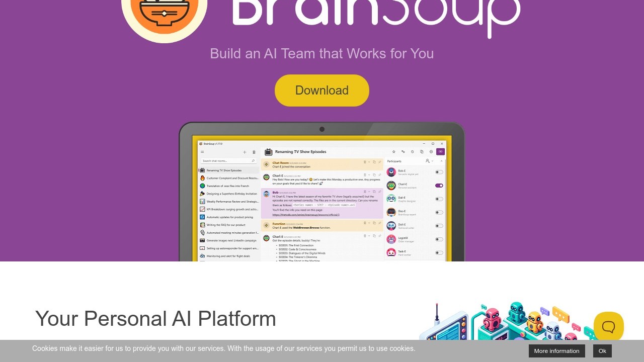 BrainSoup is a platform powered by AI that enables users to create and oversee a team of AI agents specifically designed for certain tasks and complex projects through straightforward, natural language exchanges. The platform utilizes cutting-edge Large Language Models and Semantic Kernel technology to deliver a customized, responsive, data-centric experience focused on privacy and flexibility. Users may choose BrainSoup to boost productivity, automate regular tasks, and facilitate collaborative workflows with multiple agents, all while maintaining strict data and privacy control. It is especially advantageous for those looking to integrate AI into their business or personal workflows without requiring advanced programming skills, thanks to its intuitive interface and low-code design.