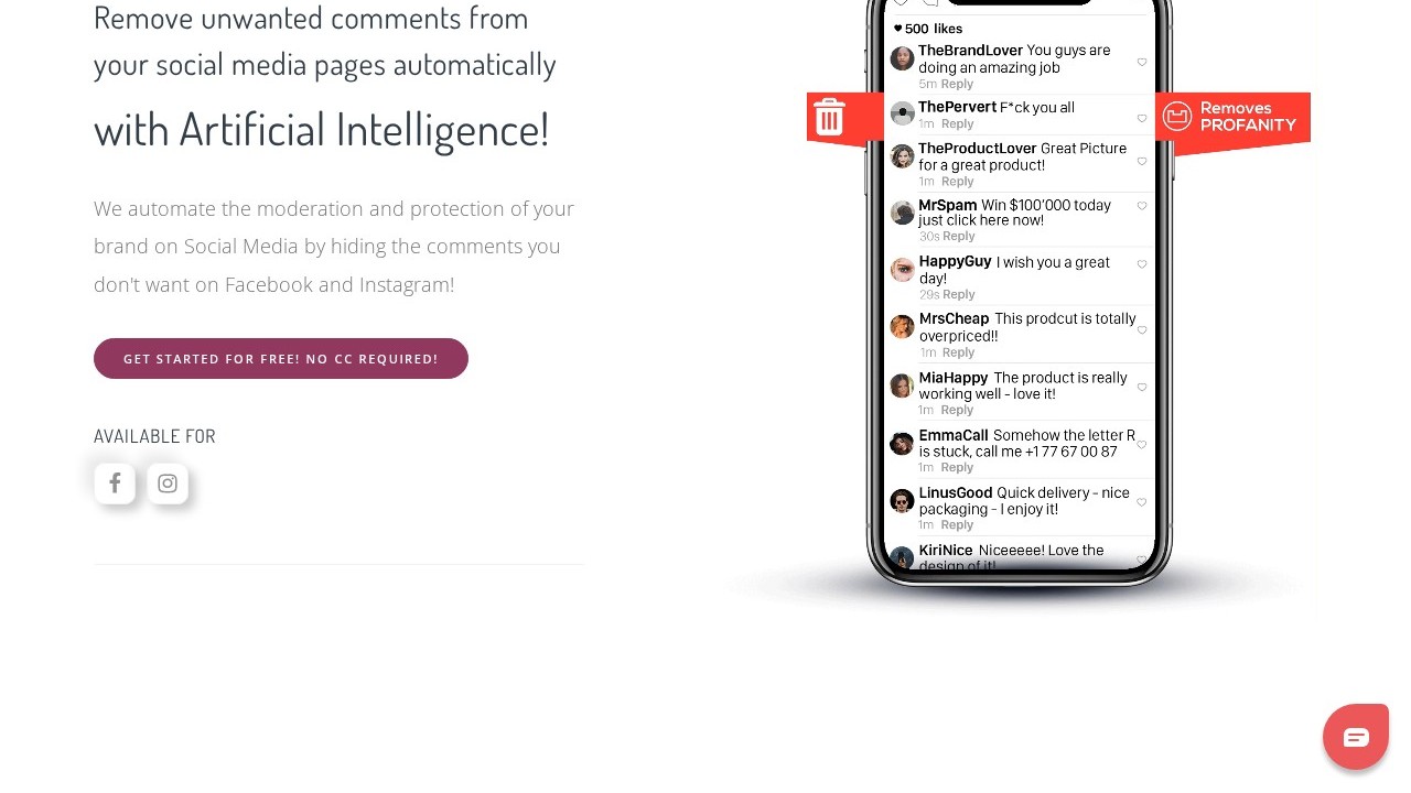 BrandFort is a tool powered by Artificial Intelligence that automatically deletes undesirable comments from social media platforms such as Facebook and Instagram. It assists in safeguarding brands against negativity, spam, political remarks, profanity, and offensive language.