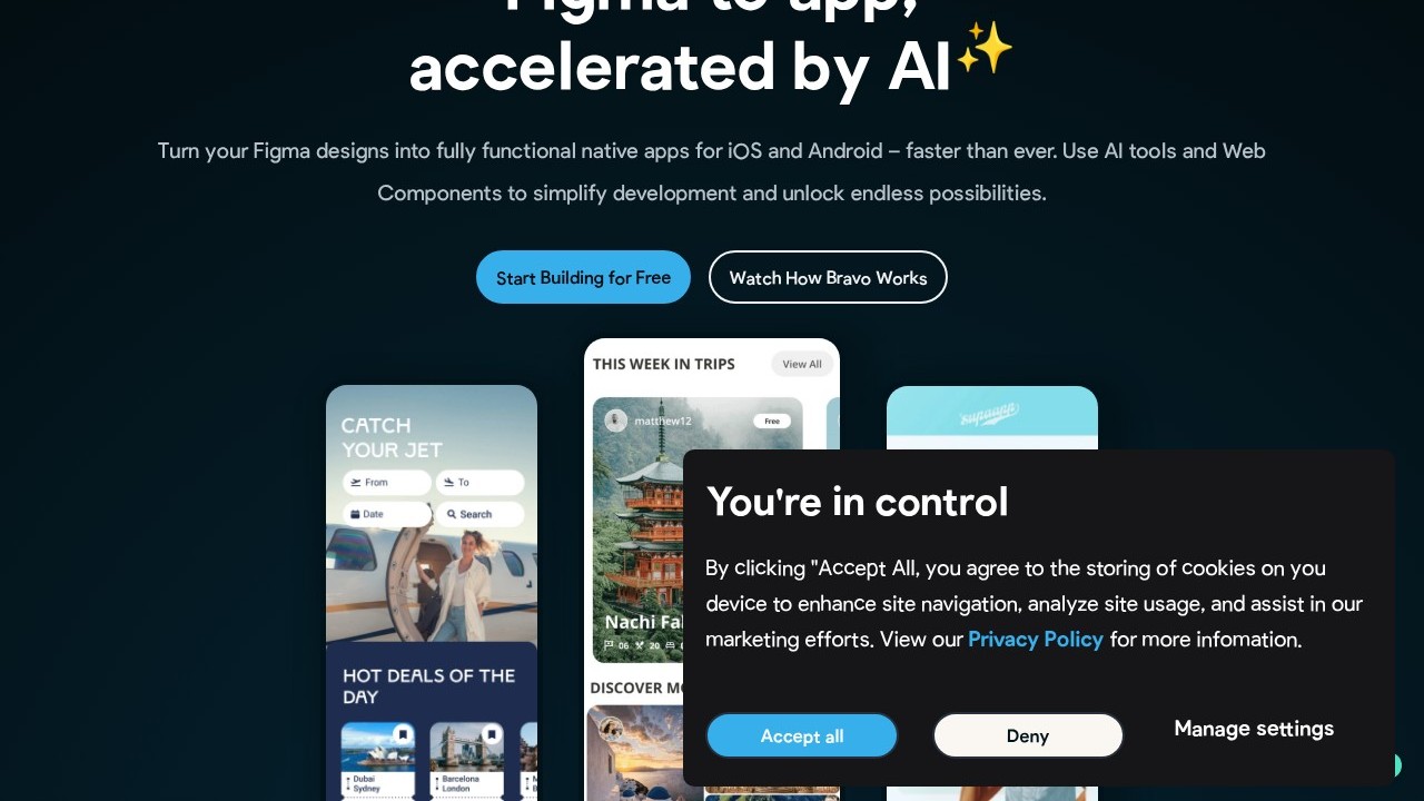 Bravo Studio is a no-code platform that converts Figma designs into fully operational native mobile applications for both iOS and Android. It provides a user-friendly interface with drag-and-drop features, backend integration, and fast prototyping abilities. This tool is perfect for design-focused projects, startups, and companies aiming to rapidly develop and refine mobile apps without the need for coding skills, offering a cost-effective option for those emphasizing design, functionality, and quick market entry.