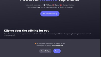 Klipme, driven by AI technology, is a tool that automatically generates visual clips for various formats like TikToks, Reels, Shorts, and more. It allows users to swiftly create promotional clips, summaries, and compilations from long-form content, incorporating custom settings, visual effects, and music. Utilizing Cognitive Mill™ technology, it is employed by businesses globally.