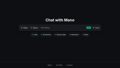 Mano is an AI-driven assistant designed to help users conserve time by automating mundane tasks such as reading lengthy texts, composing repetitive emails, and offering assistance with writer's block. Mano provides a variety of pricing plans to accommodate any budget and requirement level, featuring bookmark prompts, multiple Agents, one-click actions, GPT-4 access, and 24/7 support. It is compatible with Google Chrome, Edge, and other chromium-based browsers.