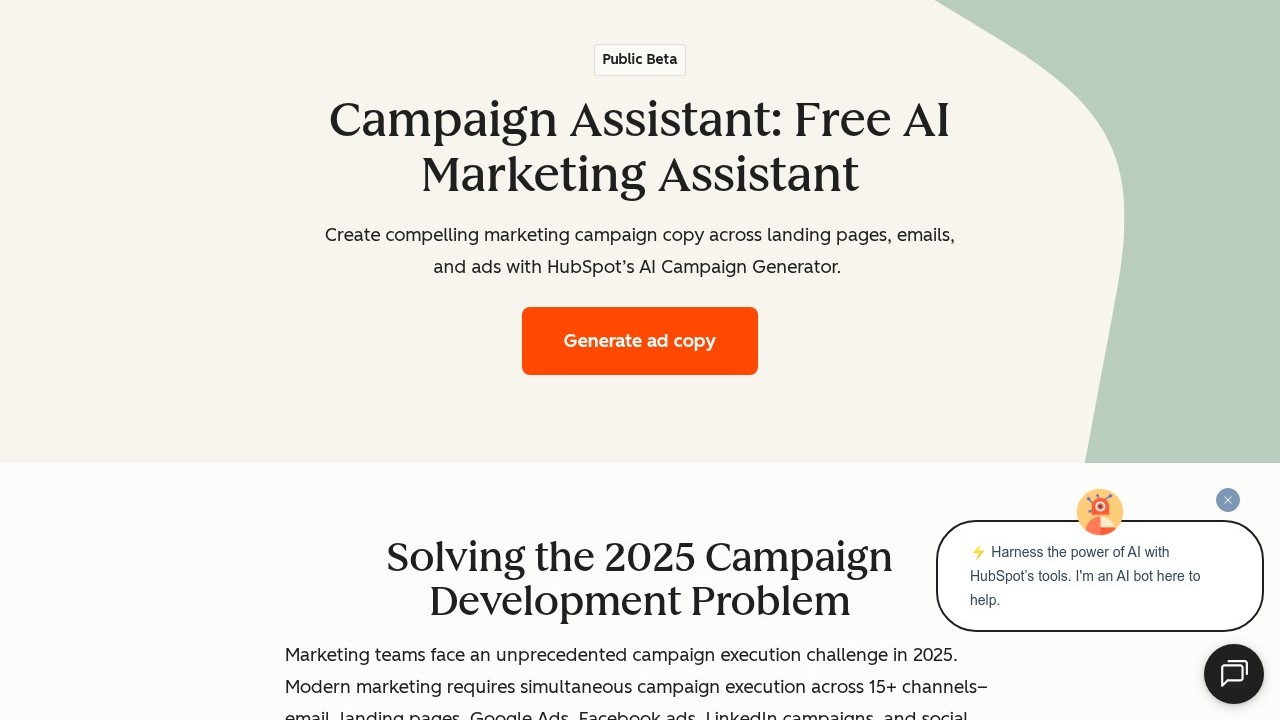 HubSpot's Campaign Assistant is an AI-driven tool that automates and accelerates the creation of marketing materials such as landing page text, marketing emails, and advertisements for platforms like Google, Facebook, and LinkedIn. By providing campaign specifics and choosing a preferred tone, users can produce top-notch content swiftly, greatly minimizing the time and effort normally needed for developing marketing content. This tool is especially beneficial for marketers and businesses seeking to quickly expand their campaigns while preserving the quality of their content, enabling them to focus more on strategic tasks that need human expertise.