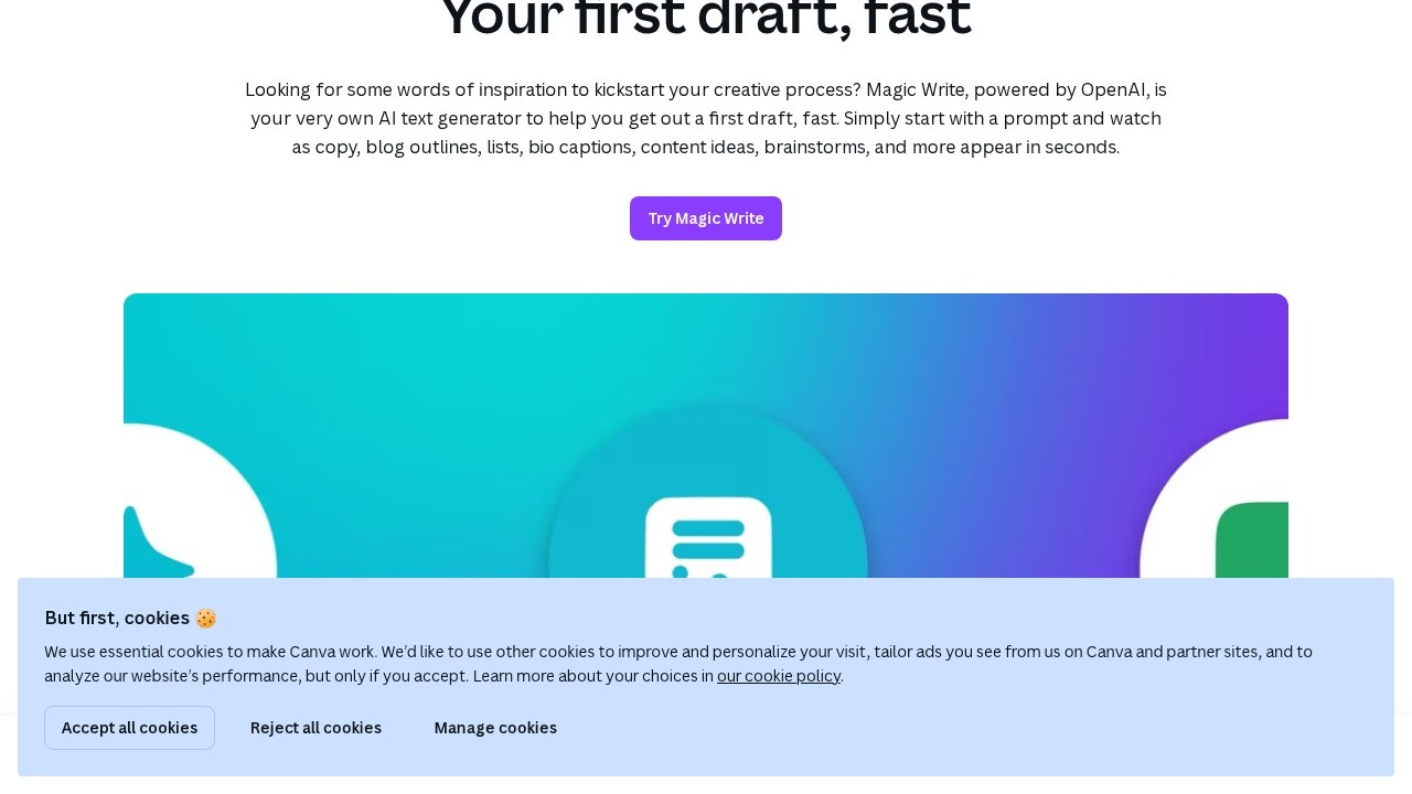 Magic Write from Canva is an AI-driven tool for text generation that assists users in swiftly creating content. It is capable of producing both short-form and long-form text, along with outlines, lists, headlines, and other types of content. The tool also includes a paraphrasing feature and a summary generator. Furthermore, it is equipped with safety measures and can be accessed on various devices.