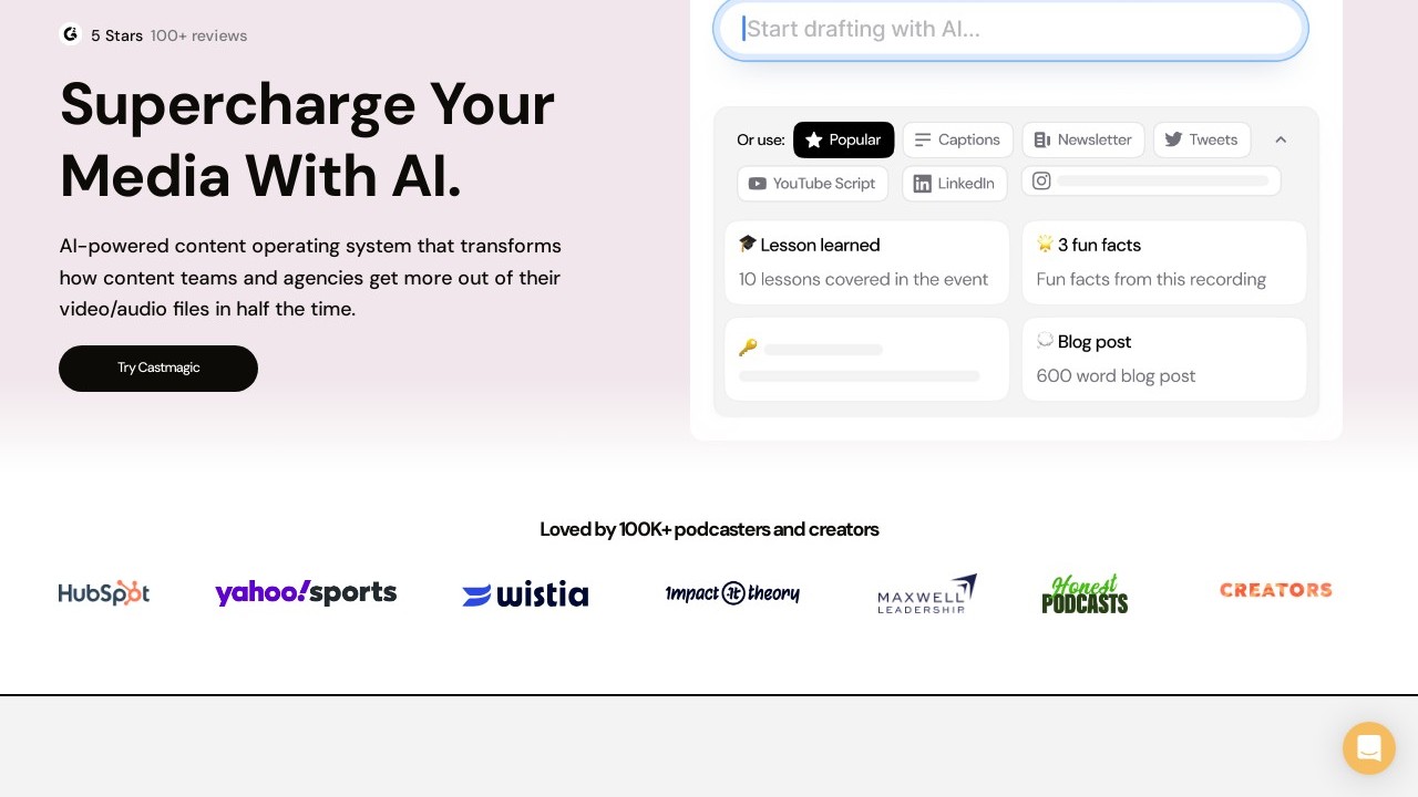 Castmagic is an automated tool designed for post-production, assisting podcast creators in conserving time and effort by swiftly and effectively converting their MP3s into content ready for use. It includes features like transcription, show notes, summaries, and social media content, enabling podcast producers to save as much as 20 hours of work every week.