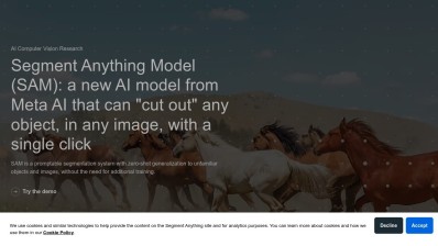 Segment Anything AI (Meta) provides the Segment Anything Model (SAM), an AI tool capable of isolating any object within any image. SAM is promptable and exhibits zero-shot generalization to novel images and objects, utilizing a range of input prompts that allow seamless integration with other AI systems. It can also be trained to label images and enhance its dataset. The SAM model is crafted to be efficient and adaptable, optimizing its data engine's performance. Contributors to the project include Alexander Kirillov, Eric Mintun, Nikhila Ravi, among others. The code is accessible on GitHub, and users can subscribe to their newsletter for updates on their latest research advancements.