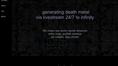 DADABOTS is a fusion of a music group, a hackathon team, and a temporary research lab that merges music with mathematics. They employ deep learning algorithms such as Wavenets, NSynth, and SampleRNN to develop an AI capable of generating and replicating music. Their primary interest lies in math rock and black metal genres. They investigate techniques to model musical styles, produce music with specific timbres, and develop a legion of remix bots. They aim to expand the limits to sustain music's vitality and uncover fresh sounds.