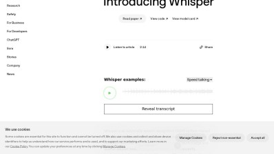 Whisper is a publicly available system for automatic speech recognition, developed using 680,000 hours of multilingual and multi-task supervised data sourced from the internet. It is crafted to effectively handle various accents, background noise, and technical jargon, and it can convert and translate spoken language in numerous tongues into English. This straightforward end-to-end method is executed as an encoder-decoder Transformer. Additionally, it can identify languages and provide timestamps at the phrase level. It aims to offer ease of use and high precision, enabling developers to integrate voice interfaces into more applications.