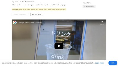 The Google Thing Translator site enables users to employ their phone's camera to convert physical objects from one language to another. It leverages artificial intelligence to recognize items and then translates the text on these objects into the desired language. Additionally, it offers users the option to save and share their translations.