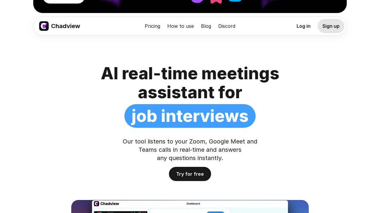 Chadview is an AI-driven extension compatible with Zoom, Microsoft Teams, and Google Meet, offering instant responses to questions asked in real-time. Leveraging the ChatGPT API, it captures and recognizes inquiries through browser audio, delivering precise answers in just 3-4 seconds. Ideal for job interviews, tech sales calls, and support teams, Chadview offers a complimentary 15-minute trial, after which users can buy additional time at $5 per 30 minutes. Customer support and feedback are available through the Chadview community on Discord.