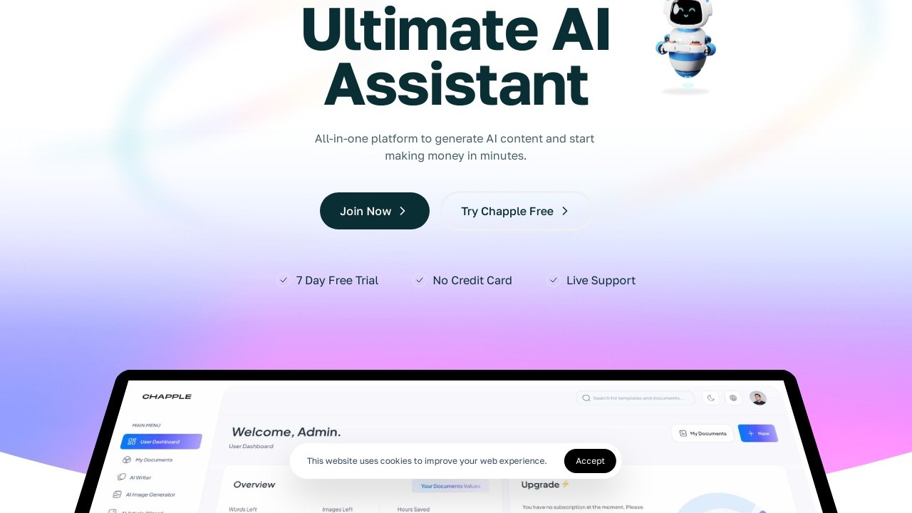 Chapple is a comprehensive AI-driven platform for content creation, aimed at boosting productivity and creativity across multiple fields. It provides a suite of tools such as an AI writing assistant, image and code generators, a chatbot, transcription services, and more. Users can quickly produce high-quality text, graphics, and code, optimizing content for SEO, creating unique articles, and developing engaging social media posts. Chapple is perfect for entrepreneurs, writers, UX designers, content creators, and students who want to overcome writer's block, streamline their creative workflow, and generate a diverse range of content efficiently. With support for multiple languages and customizable templates, it appeals to those who wish to save time and improve the quality of their digital content creation.