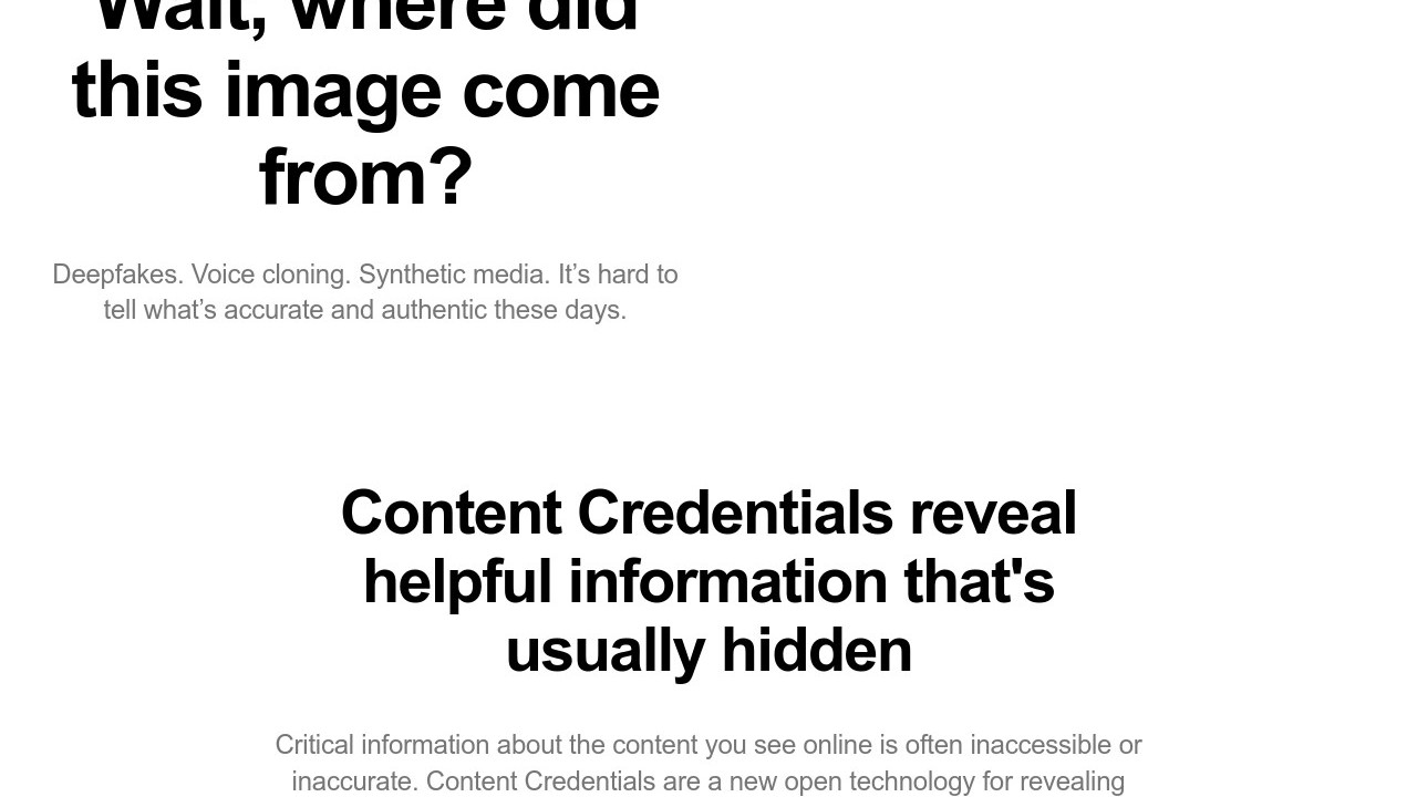 Content Credentials is a technology designed to tackle the issues arising from deepfakes, voice cloning, and synthetic media. It offers accessible and precise information about online content, providing insights into its origin, creation process, and editing history. With a single click, users can access essential details, enhancing trust in online content. Creators receive due credit, as Content Credentials facilitate recognition, marketing, and audience growth. The Content Credentials pin serves as a marker, permitting users to investigate further details about the content. Built on open standards, tampering detection, and accountability, Content Credentials are deployed worldwide for a more transparent internet.