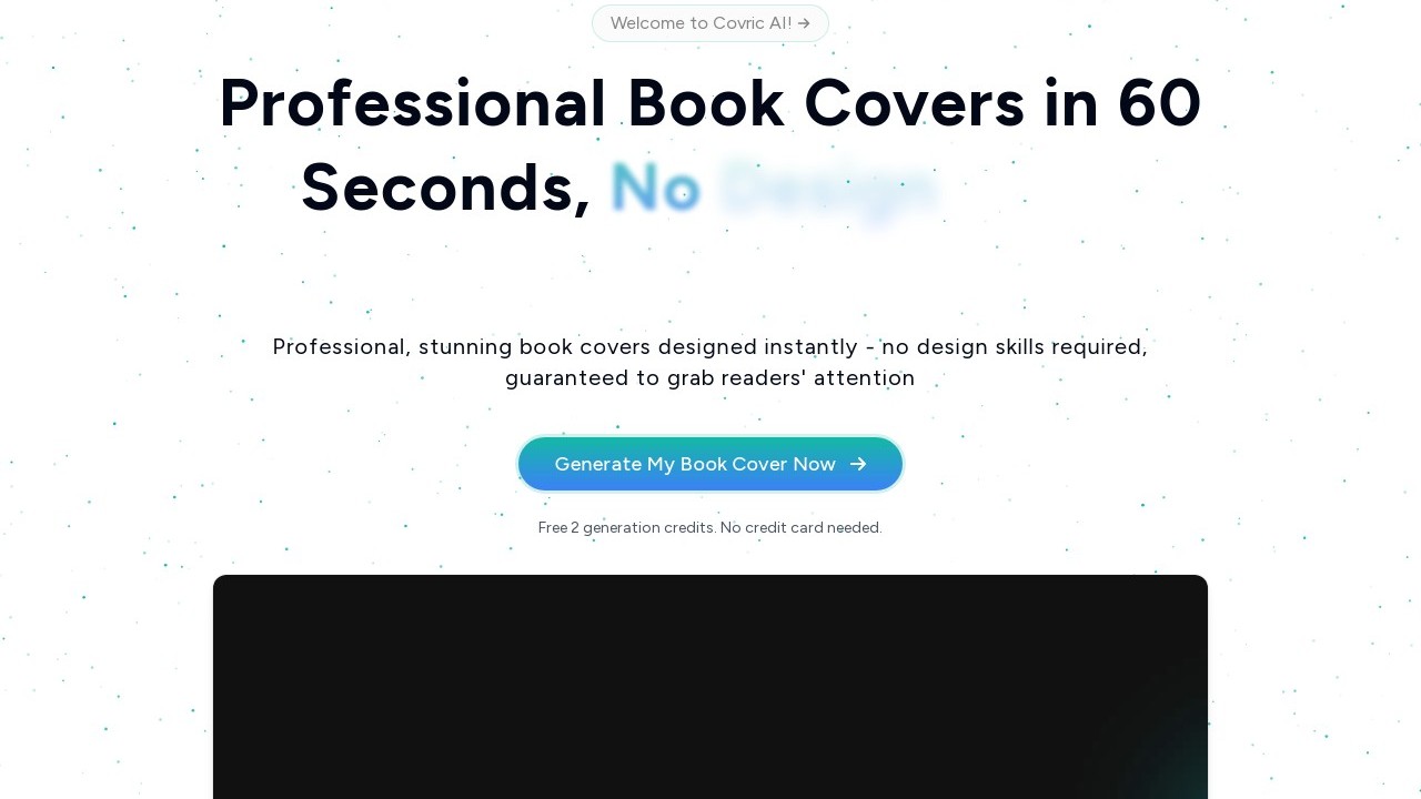 Covric AI is an AI-driven tool for creating book covers that produces high-quality designs in a matter of seconds, without needing any design expertise. It customizes designs for particular genres to attract the intended audience. With one click, users can modify the mood, style, and tone. Covers are optimized for Amazon KDP and various publishing platforms to enhance visibility and click-through rates. The platform offers endless variations, enabling authors to experiment with different creative ideas. Covric AI provides free credits for newcomers, subscription plans for regular authors, and flexible pay-as-you-go options, making it suitable for both novices and professionals.