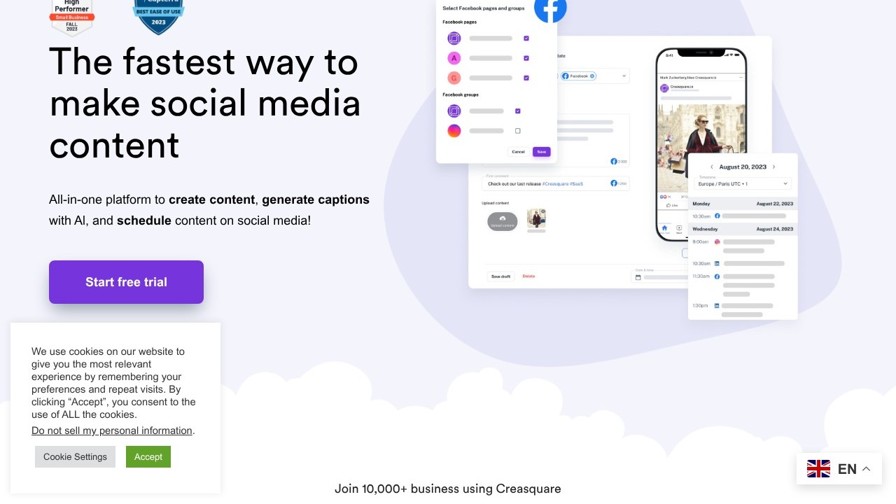 Creasquare is a comprehensive platform that leverages AI to assist businesses in crafting and scheduling social media content. It offers tools for graphic design, video creation, and copywriting, enabling users to easily produce compelling content. With integrations for social media platforms like Facebook, LinkedIn, TikTok, and Instagram, Creasquare streamlines content publishing across various channels. It also includes an AI content writer that creates captions in multiple languages and styles. The platform features a content calendar for effective planning and scheduling, saving time and ensuring organized content management. Creasquare provides a free trial and highlights its customer-focused approach to achieving success in digital marketing.