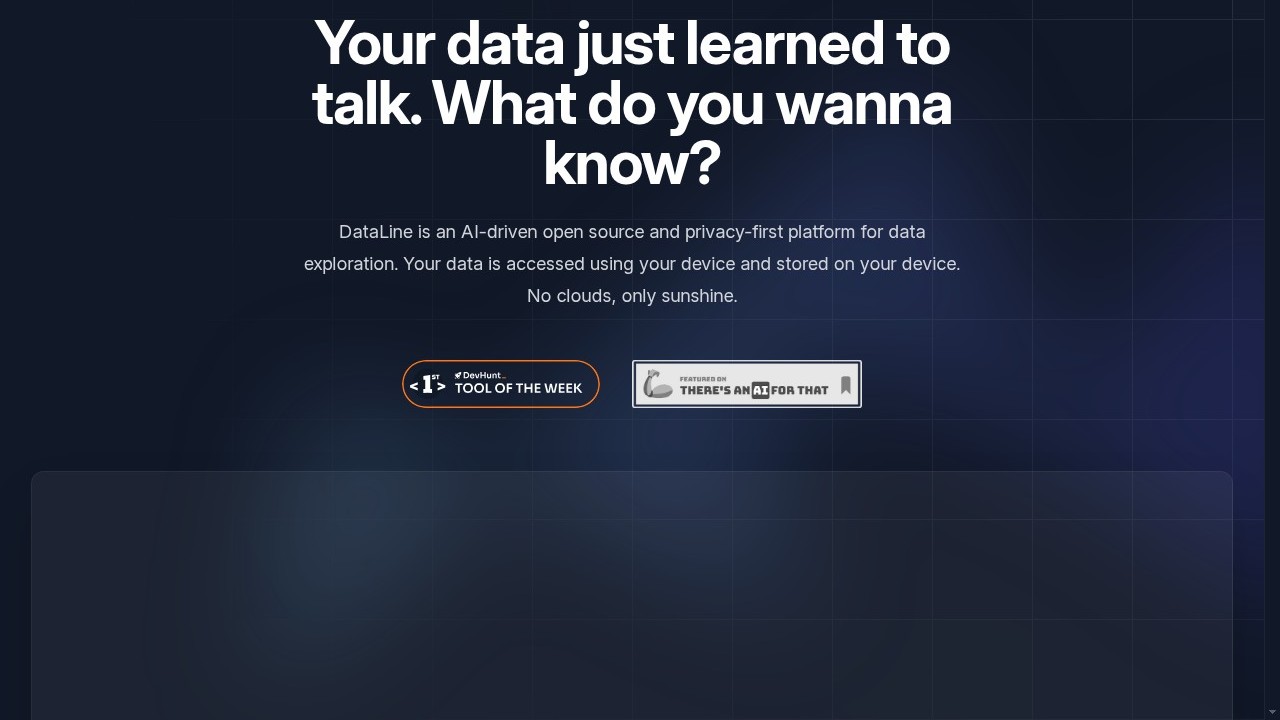 DataLine is an AI-driven tool that streamlines data analysis and visualization by allowing users to engage with their data through conversational queries. This cutting-edge platform empowers both non-technical individuals and developers to effortlessly create tables, charts, and dashboards by conversing with their data, eliminating the need for complex query languages or technical know-how. Users might be drawn to DataLine to swiftly gain insights, make informed decisions, and enhance their workflow efficiency, particularly when seeking an effective text-to-SQL solution or when aiming to visualize data without the steep learning curve often linked to traditional data analytics tools.