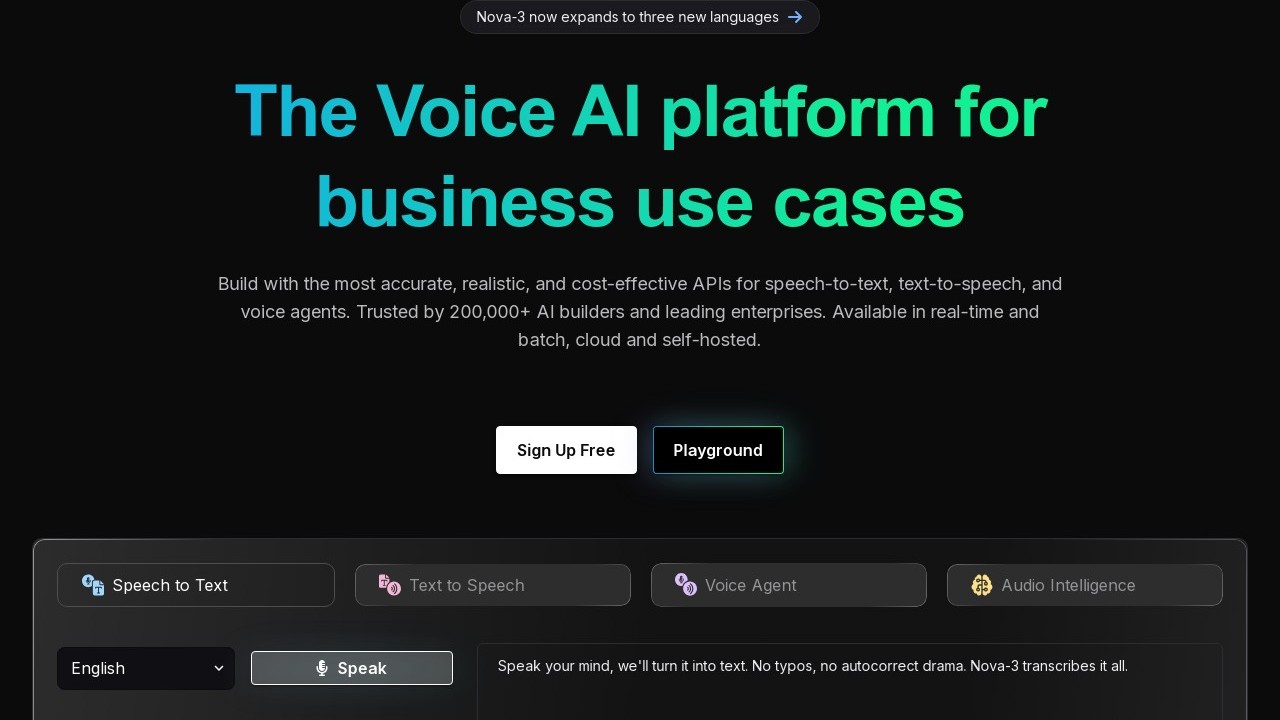 Deepgram provides cutting-edge speech-to-text and audio intelligence API solutions that deliver highly accurate and fast transcriptions, while also being budget-friendly. It is suitable for a wide range of applications, including speech analytics, media transcription, conversational AI, contact center operations, and medical transcription. Users may choose this tool to extract actionable insights from voice data, improve customer service, or create voice-activated systems. Its features, such as real-time transcription, sentiment analysis, topic detection, and language comprehension, make it an appealing option for businesses and developers looking to incorporate advanced voice recognition and analysis into their applications or services.