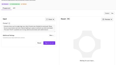 FLUX.1 [pro] by fal.ai is a sophisticated generative media platform for developers that facilitates the creation of detailed and personalized visual content through AI-based inference. With features for commercial use and a Playground API, this tool is especially beneficial for producing high-quality images from textual prompts, such as an extreme close-up of a tiger's eye with specified artistic components. People might choose to use FLUX.1 [pro] due to its capacity to generate distinctive, customized visuals for various purposes, from digital art to marketing materials, offering a smooth and efficient method for addressing visual content creation needs.