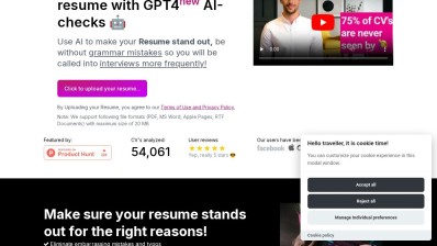 resumecheck.net utilizes AI technology to review resumes for errors and misspellings, offers suggestions for improvements, tailors them for particular job positions and industries, and creates entirely new sections to be added to a resume. Additionally, it delivers over 20 general recommendations, corrections for previous experience, comprehensive grammar checks, personal skill modifications, and adjustments to the resume's structure.