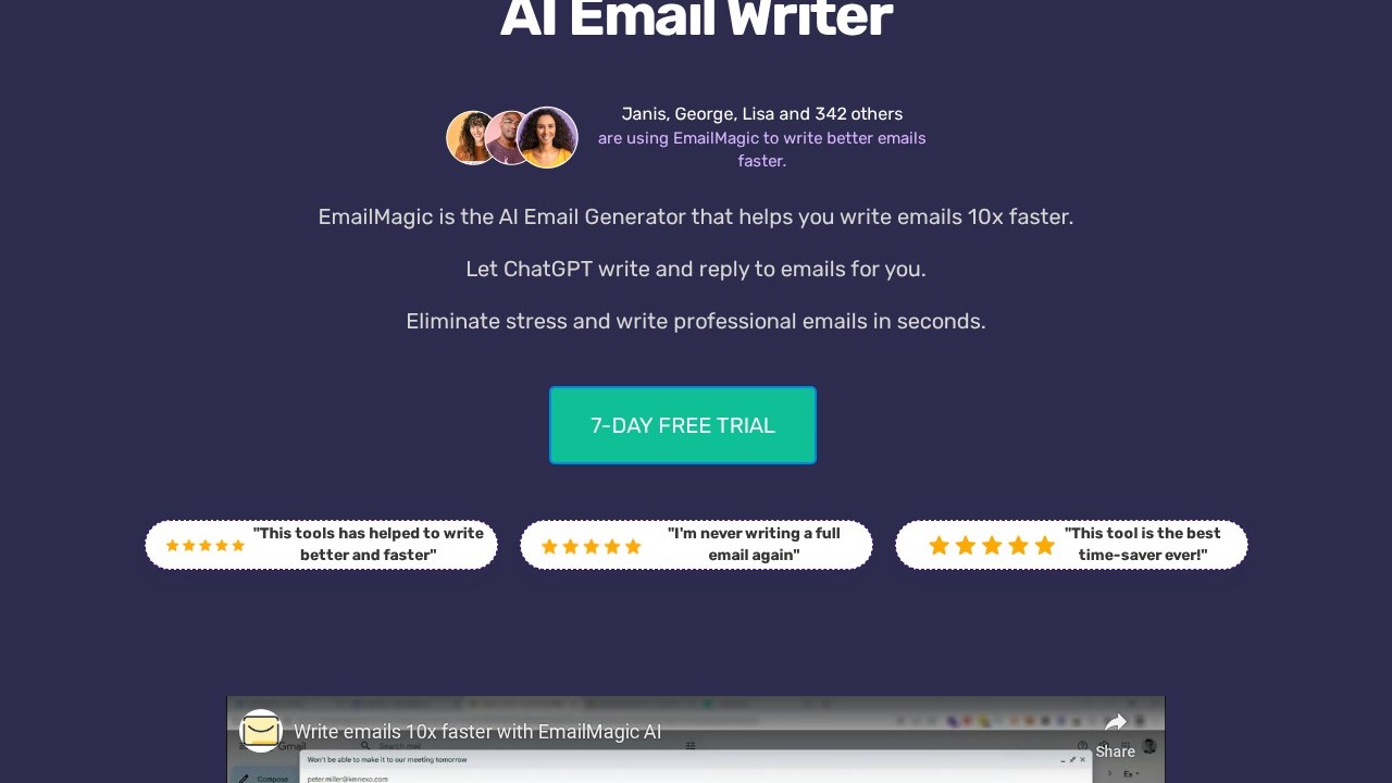 EmailMagic is an AI tool designed to help you draft emails ten times more quickly. Consider it your digital counterpart as it composes emails in your unique style!