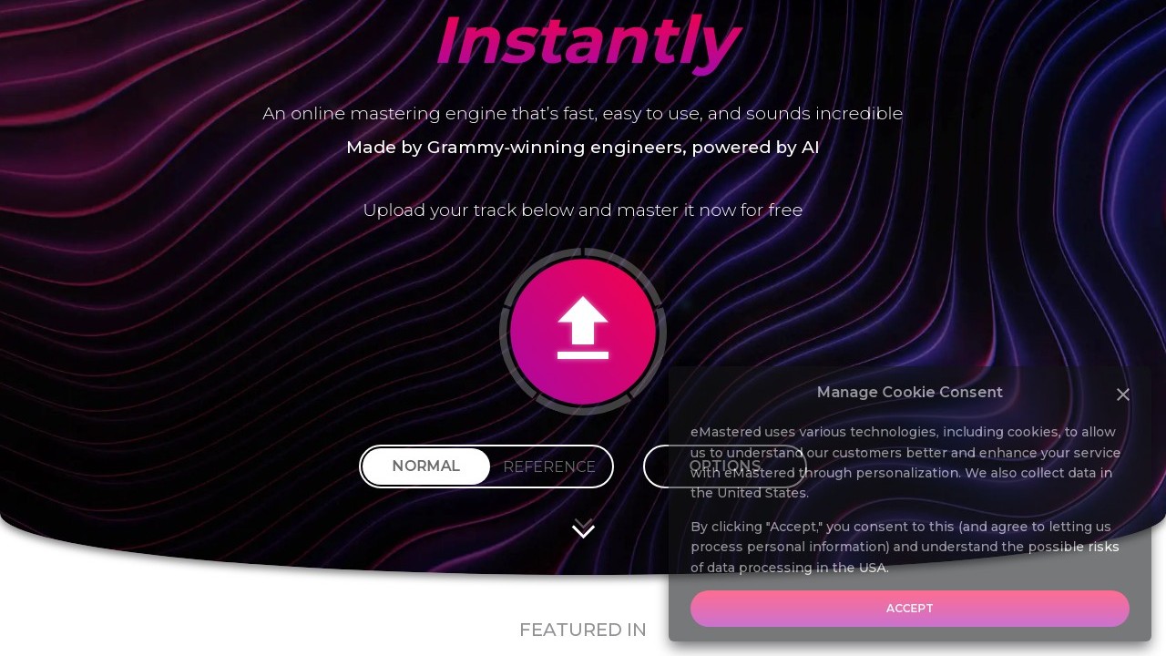 eMastered is a web-based mastering tool that leverages artificial intelligence to aid musicians in enhancing their track's audio quality. It offers a variety of capabilities, including Reference Mastering, Advanced Mastering Options, Cloud Storage, a Shareable Library Page, Track Statistics, among others. Additionally, it provides a 14-day money-back guarantee, ensuring an affordable and dependable solution for fast and simple track mastering.