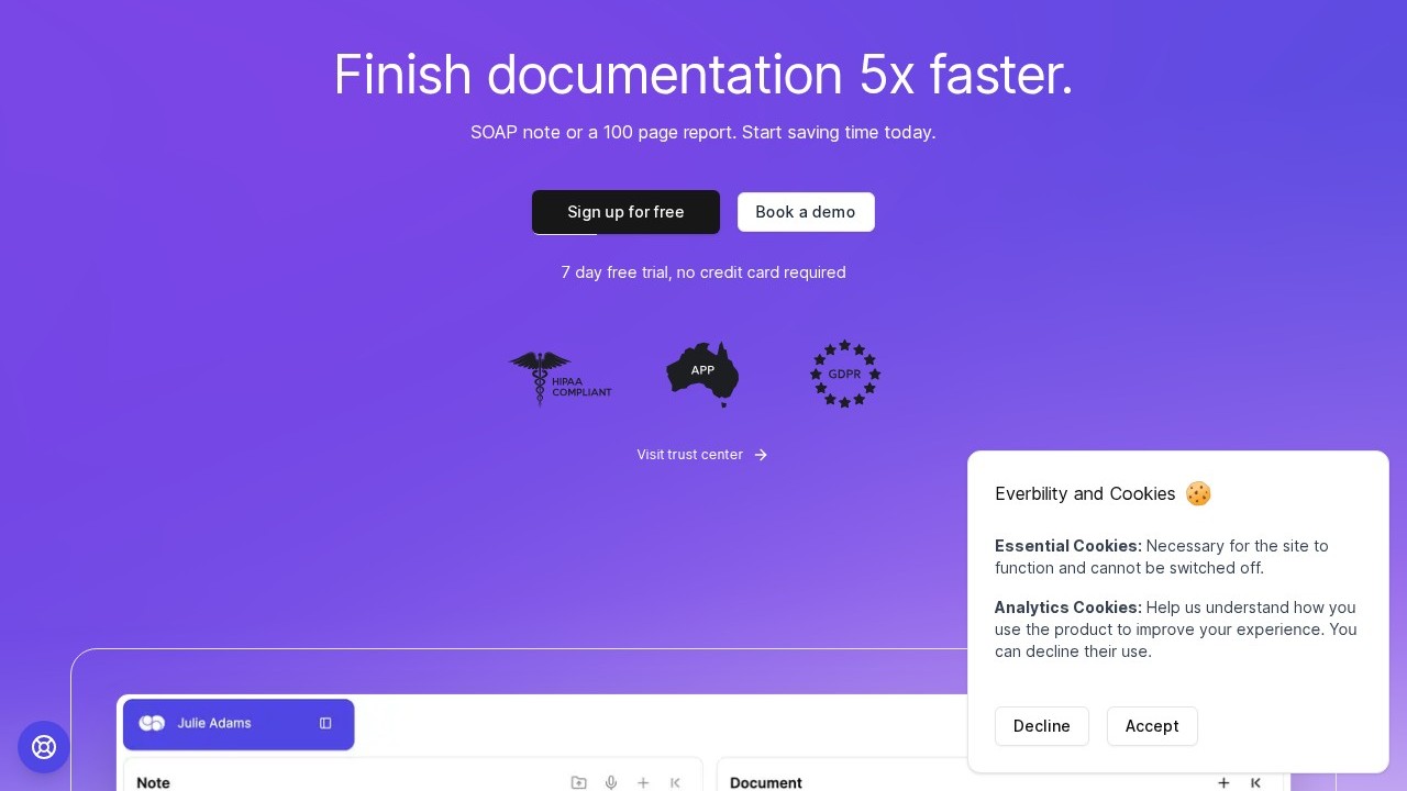 Everbility is an AI-driven documentation tool created for Occupational Therapists. It offers resources to simplify the documentation process, enabling therapists to better support their clients. Key features include the conversion of informal notes into formal session summaries, referencing reports with pertinent research articles, and utilizing pre-designed templates for report generation. Additionally, therapists have the option to connect with their clients by translating and summarizing reports in their native language.