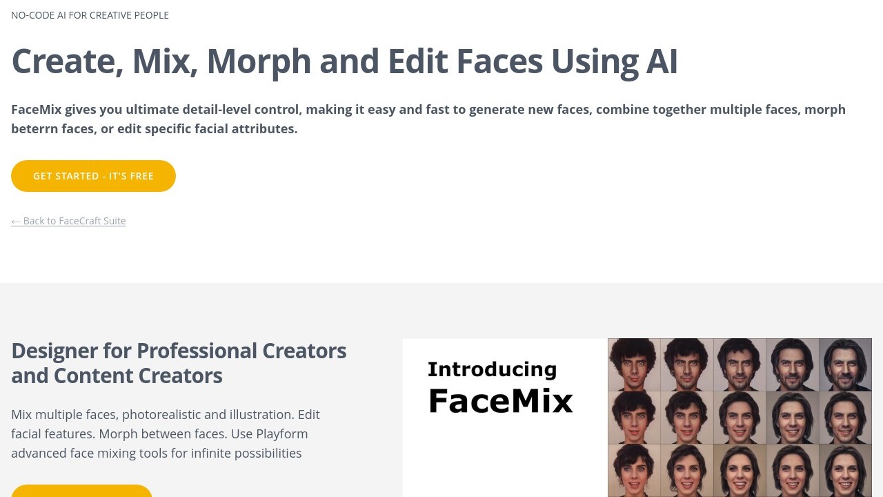 Face Mix is a no-code AI tool designed for creatives, allowing users to blend and modify faces with AI technology. It supports the combination of up to four images, offers the ability to edit over 30 facial attributes, create morphing videos, and produce faces for 3D modeling. Artwork generated with Playform remains the intellectual property of the artist or user.