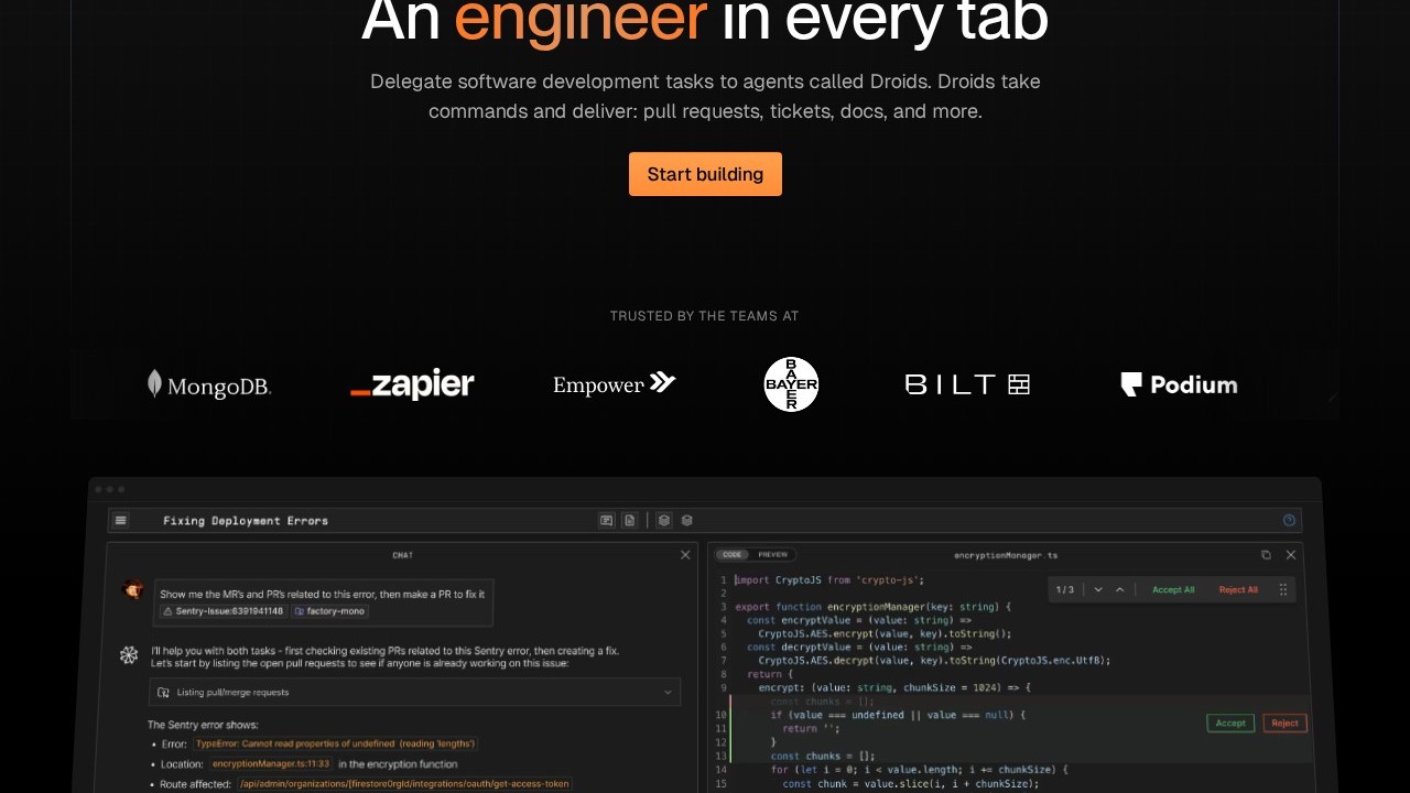 Factory AI is a professional software development platform that utilizes AI-driven "Droids" to automate and optimize the full engineering process—from generating and testing code to creating documentation and solving incidents. It integrates code, documentation, and tickets into one cohesive workspace, all while adhering to rigorous security and compliance standards (SOC 2, ISO 42001). Engineering teams select Factory AI to boost productivity, speed up development timelines, address incidents more swiftly, and realize tangible cost reductions, all while ensuring enterprise-grade data privacy and security that generic AI solutions often do not provide.